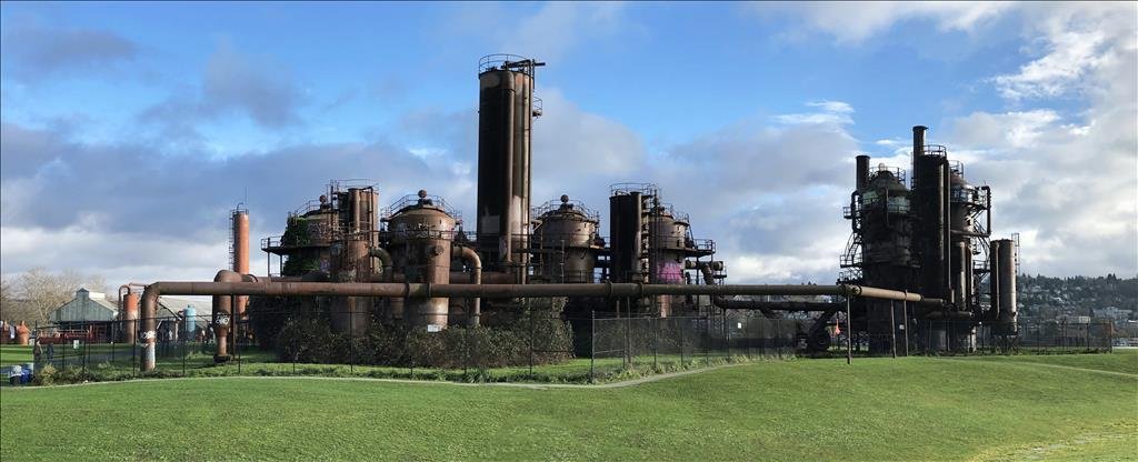 Richard Haag, American landscape architect, set out to answer these questions as he developed the masterplan for Gas Works Park that opened to the public in 1973. It featured something folks hadn’t seen in a park before: an old gas works plant, out of commission since the 1950s, now standing as a towering relic over its toxic grounds.