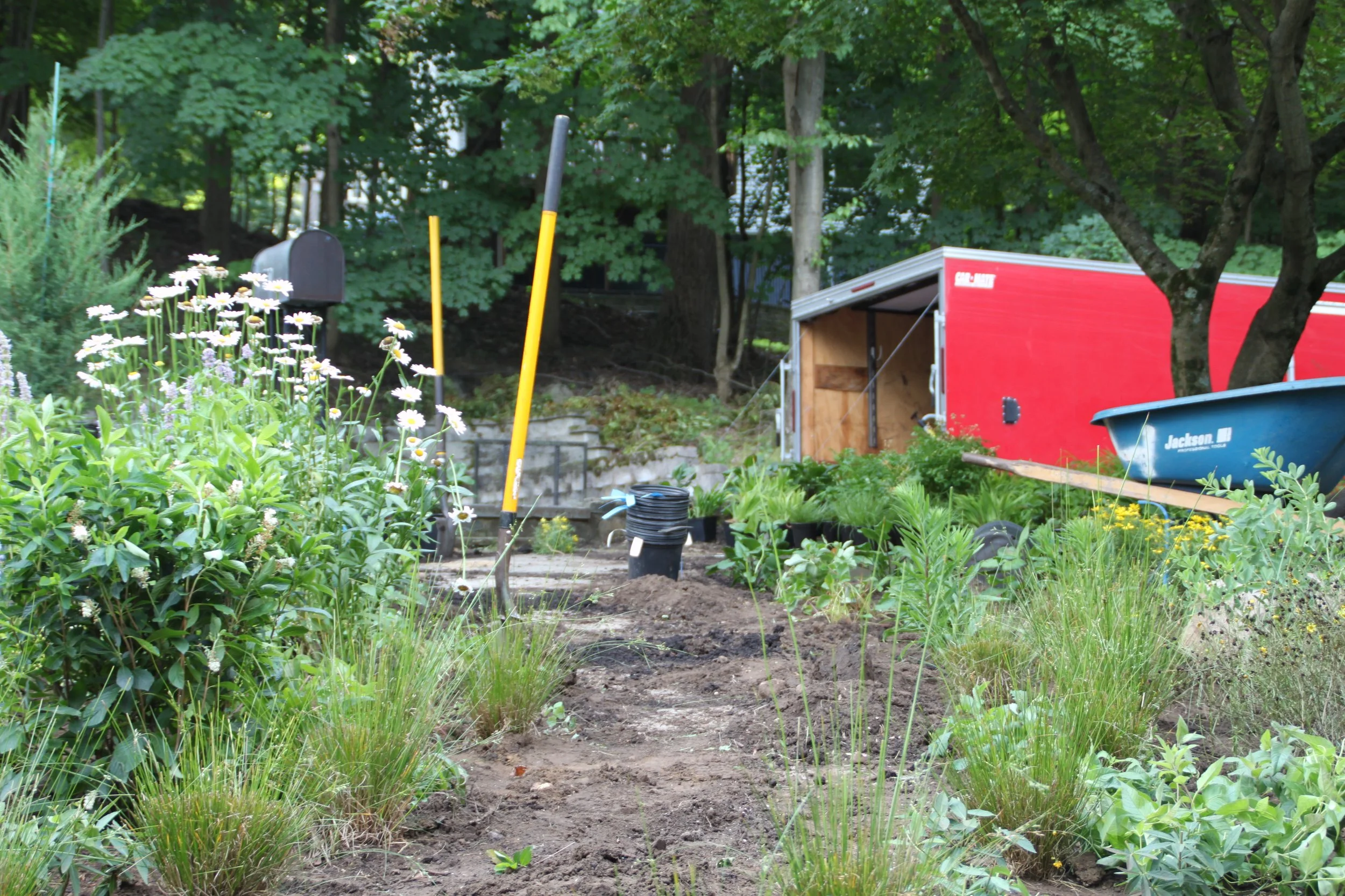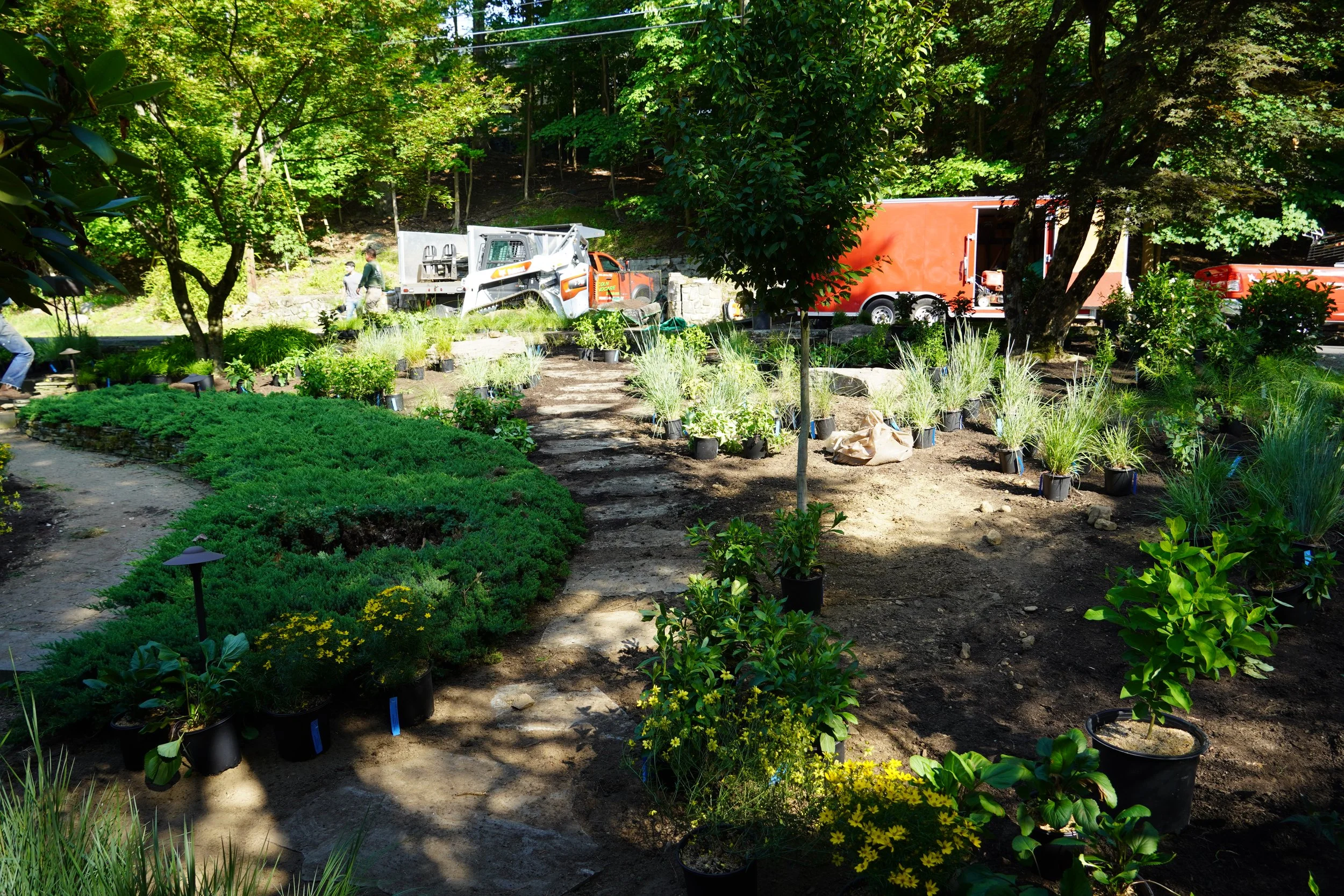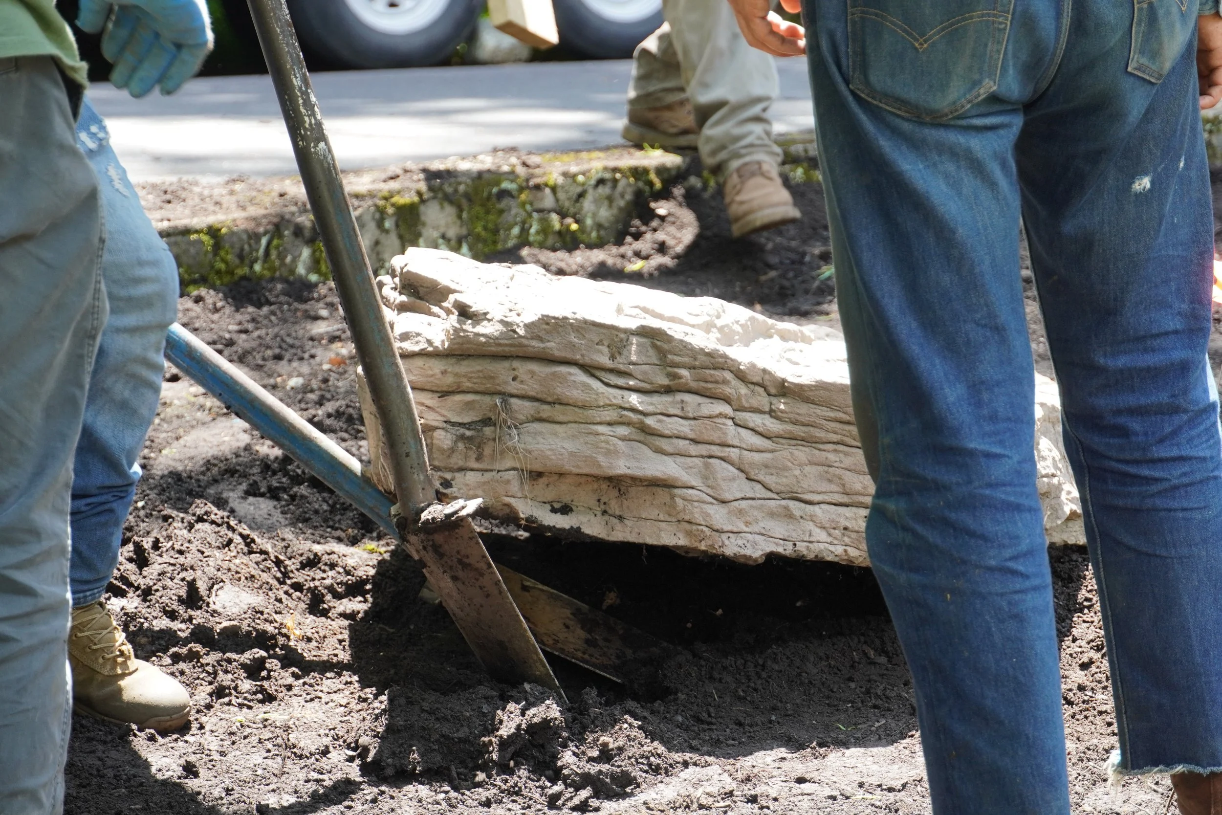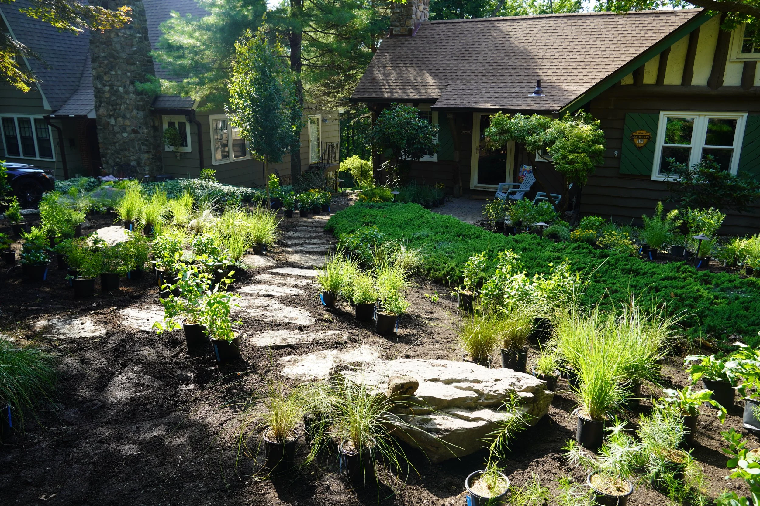Hardscaping: Locally sourced bluestone steppers, 3’ fieldstone boulders